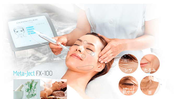 | メタジェクトのドットアプローチによって肌深部へ浸透・定着させる美容液は、肌タイプやお悩みに合わせてチョイス。 | 適切な周波数の設定のドットアプローチにより肌内部へ美容液成分を届けると同時に肌の再生力を高める振動が肌を目覚めさせます。 | 豊宮な美容エキスを凝縮させたマスクで肌の奥深くまで届けた美容成分をしっかり定着させながらさらに保湿します。 | 抗菌・鎮静効果に優れたプロポリスを含むクリームで刺激を受けたお肌を優しく保湿し保護します。 |