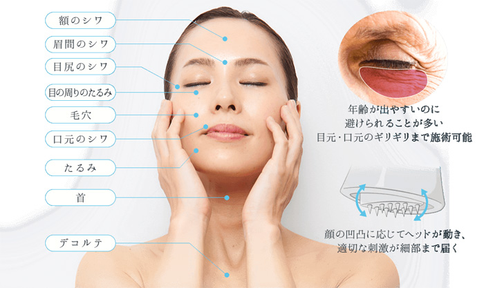 | 小鼻などの顔の凹凸や目の際や唇にも対応 |