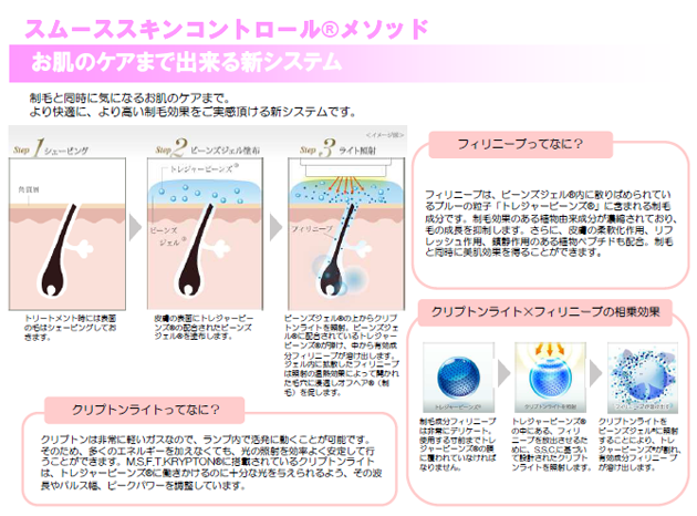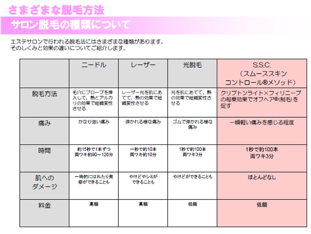 世界の女性を美しく導いてきたイタリアDEKA社の新システムS.S.C(スムーススキンコントロールメゾット)により脱毛しながら肌もケアできるため美肌効果を得ることが出来ます。